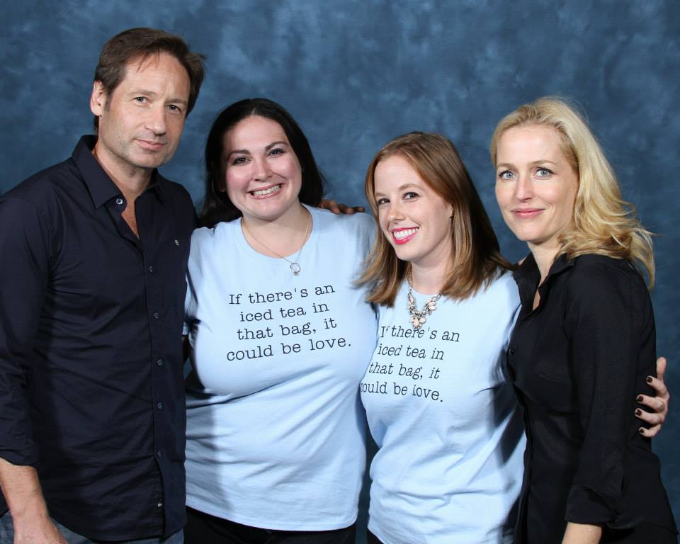 New York Comic Con was our first major convention together and our first convention as accredited members of the press. I don’t think it could have gone any better. John Barrowman learned we had no boundaries and thus rested his head on our collective bosom. We scored loads of fan art. We went to a party as a 9th, 10th, 11th, and Jack Harkness (“You don’t want to know what I am thinking right now.”) cosplay and made new nerd friends. We attended premiere panels like Agents of SHIELD and The Walking Dead (Sage’s first experience with the show…oh how things change in a year). We got to attend the press roundtable for Sleepy Hollow and interview HOF Sexiest Man Alive Tom Mison (“My dad said my shoes were snazzy!). And oh yeah…we met our heroes David Duchovny and Gillian Anderson and discussed our custom made shirts with them (“What’s that from?” “YOUR SHOW!” “It’s called The X-Files“). NYCC 2014 is less than a month away…and the gauntlet for it exceeding 2013 has been thrown down. We can’t wait.